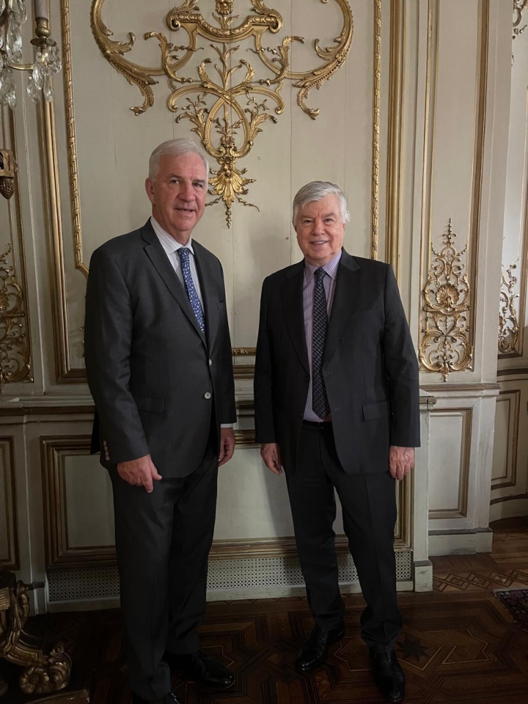 En ambas fotos Guillermo Ambroggi, presidente de CECRA con Juan Angel González Insaurralde