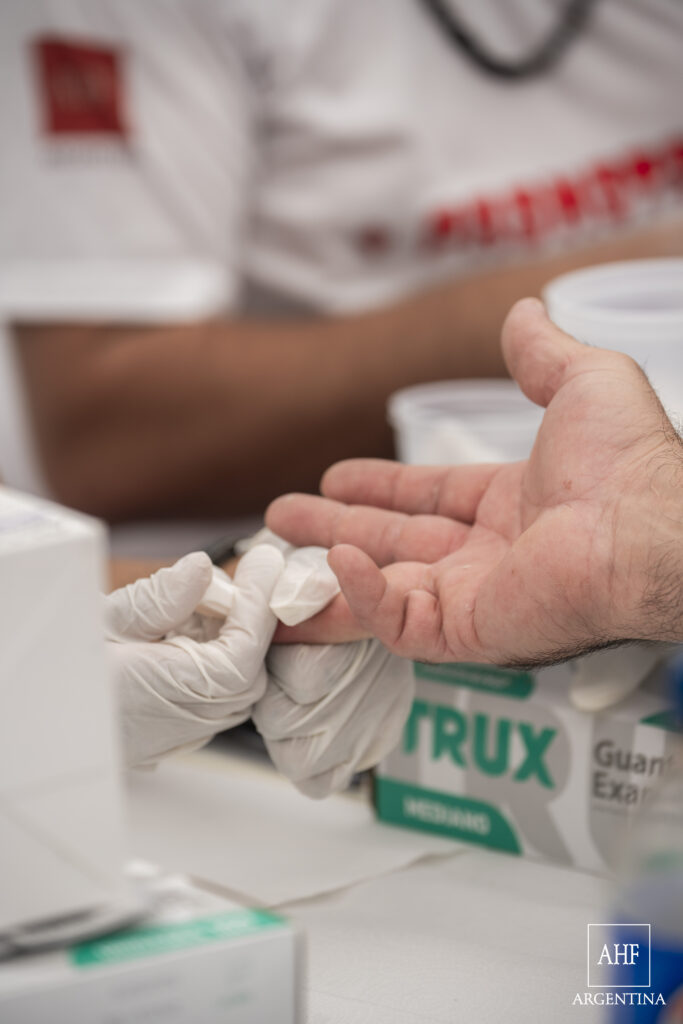 Profesionales de la salud realizando testeos gratuitos en una actividad de prevención organizada por AHF Argentina.
