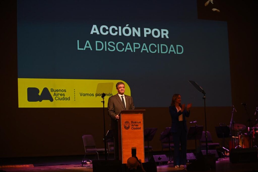 Jorge Macri y Clara Muzzio presentando el Plan de Discapacidad en el Teatro Colón.